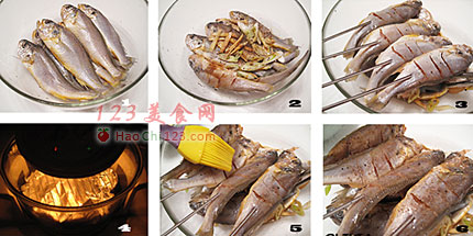 5、在串好的黄花鱼上刷薄薄一层蜂蜜。