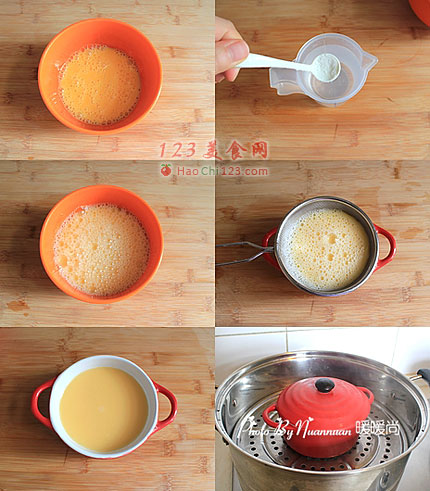 2、蒸制的时间取决于蛋液和水分的多少,而且最好不要用生水来蒸蛋羹。我水开后入锅蒸了近20分钟至蛋液表面凝固后关火焖了3分钟。[sushi.laoyanhuo.com]