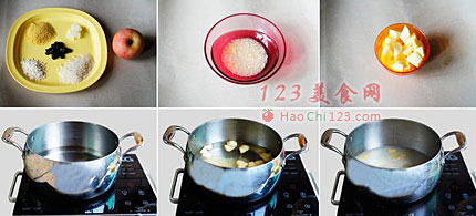 5、放入洗好的米与切好的苹果块。