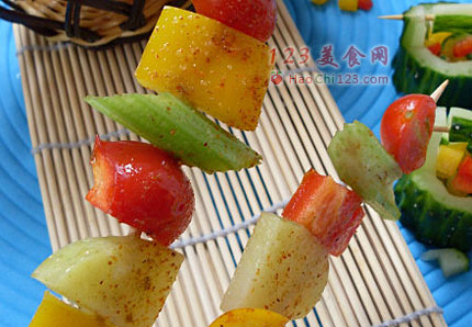 5、等菜串煎到八成熟以后,撒辣椒面,孜然粉以及少许盐,继续煎熟就可以了。[sushi.laoyanhuo.com]