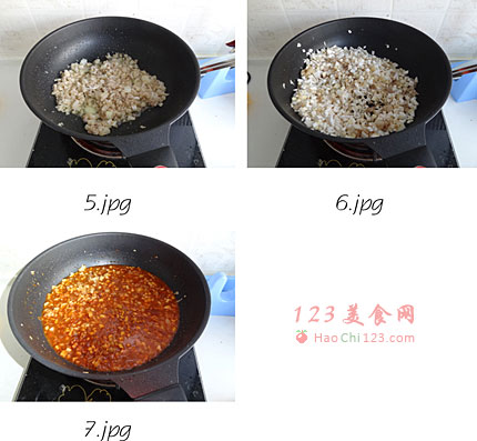 5、锅内倒油,炒散肉末,慢慢煸炒,把肉里的油炒出来。