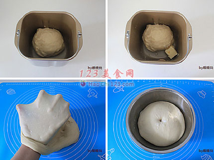 5、基础发酵结束后,将面团揉匀排气,然后等分成8份,滚圆后盖上保鲜膜松弛15分钟。