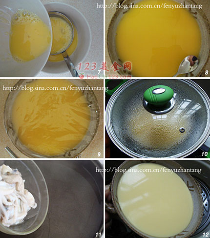 1、蛋液必须过2次筛去杂质,表面的气泡一定要挑干净。