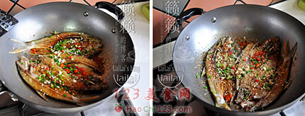 5、煎鱼不能用猛火,不能心急将鱼翻来翻去,用小火将一面煎透后再翻面。
