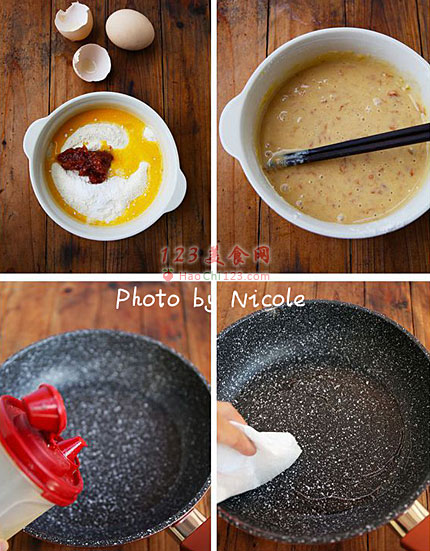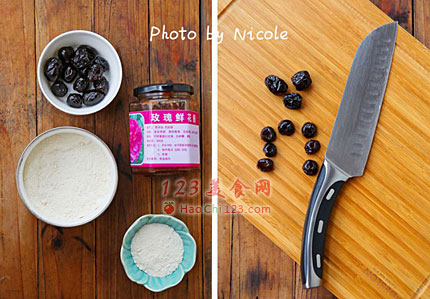 二、做法:1、将粉类、蛋液和玫瑰酱混合。