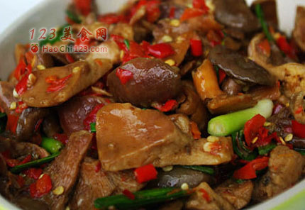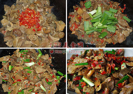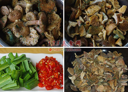2、锅中热油,放入枞菌翻炒,会出一点点水,稍久炒一会儿。