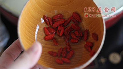 5、加点枸杞,一起大火烧开,小火慢炖2个小时即可,喝的时候可以加盐和香菜提味。