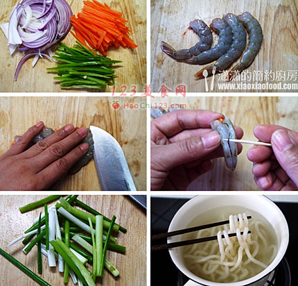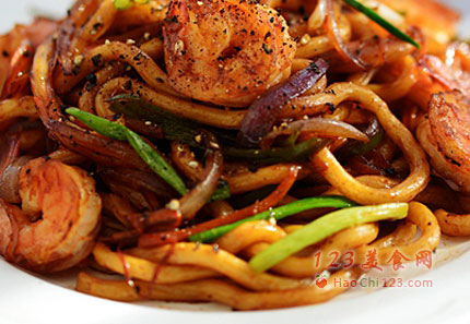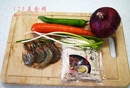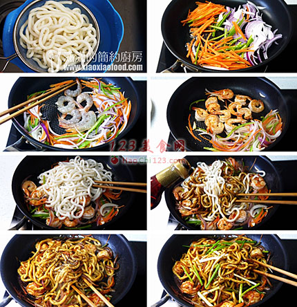1、大虾换成牛肉、鸡肉、猪肉等,就是不同口味的炒乌冬啦!