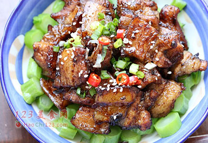 3、黑蒜是可以直接吃,我最喜欢坐在电脑前剥来吃,不过家里的男人们仿佛都不喜欢直接去吃黑蒜,所以只能要么煲汤,要么就偷偷的加到食材里边,今天做的黑蒜焖五花肉就是其中一个做法:将黑蒜磨烂,然后加到五花肉里,加入一匙羹的叉烧酱,半匙羹柱候酱,半匙羹蚝油,还有半匙羹面豉酱,加1/2茶匙盐,少许麻油腌,在冰箱里放过夜(我很庆幸我是广州人,广州人做菜会放很多很多五花八门的酱料,有些邻居老是说我做菜放的酱太复杂了,不过这是我的习惯,也是我要让家里先生吃到在外面吃不到的味道的方法,当然大家也可以根据自己的习惯调属于自己的味道,做菜是很中庸的,只要咸味够就好了。通常放过夜来腌肉都是家庭煮妇才会做的,如果不够时间,可以腌1-2个小时,不过入味程度就不及过夜了。腌过夜的肉,颜色都特别的诱人的)。[sushi.laoyanhuo.com]