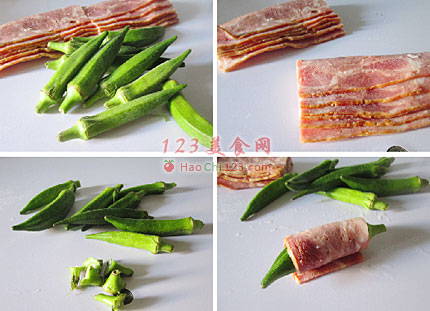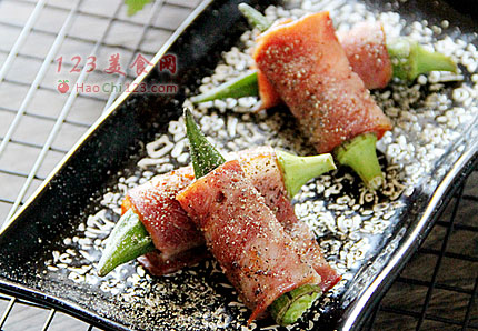 2、秋葵和培根的搭配是一种非常完美的搭配。这道培根秋葵卷是一道快手的家常菜。培根烤出的油脂滋润了秋葵,使秋葵的口感更鲜香味美。