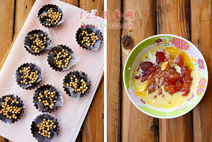 2、挞皮先烤定型,压重物以免鼓起。