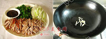 3、锅中放一点油烧热,放入姜丝爆出香味。