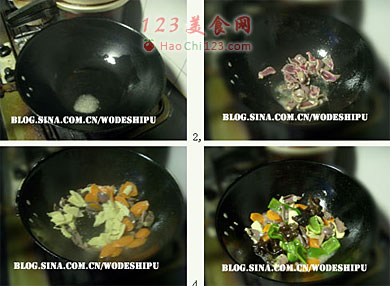 2、等油温有7,8成热时,放入鸭肫煸炒。
