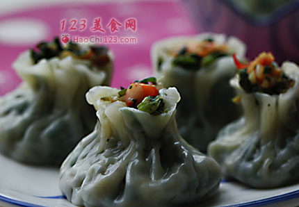 6、锅中做水,将包好的小烧卖上锅大火蒸10分钟(因为都是素馅的,所以不用蒸时间长)。[sushi.laoyanhuo.com]