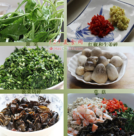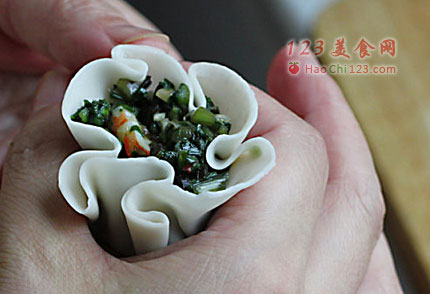 5、再加入虾仁丁就开以包了。