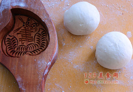 3、把面团切成一个个的小面剂,在模具里按实了,再在面板上当的一下卡出来就行了。