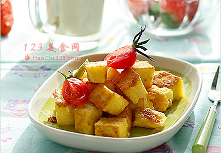 3、馒头块入锅后要及时翻面,这样才能煎的颜色均匀。[sushi.laoyanhuo.com]