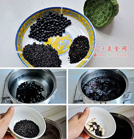 1、也可用高压锅先把黑豆压熟,连汤和黑米、莲子同煮。