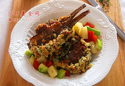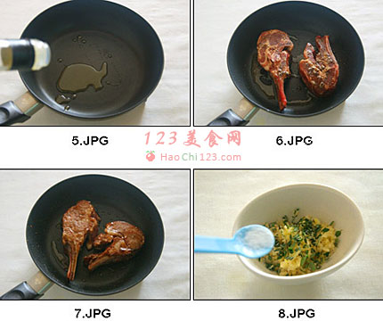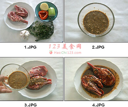 12、烤羊排时,可将配菜炒熟装盘,浇汁可将腌制羊排的调料汁烧热,淋在上面即可。