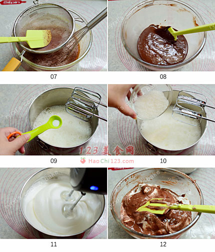 12、分2-3次将蛋白和可可面糊混合均匀。