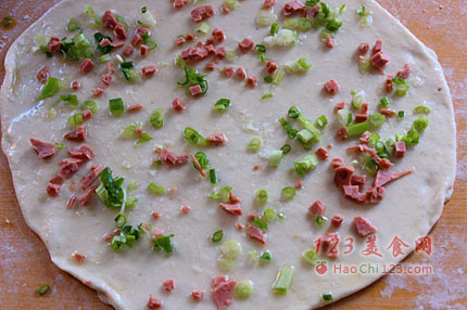 5、如果想吃脆的,卷好之后就擀成饼,下锅烙,如果想吃比较软的,可以饧发个20分钟左右。如果想吃脆的可以擀的更薄一点,这些都在自己的掌握之中。