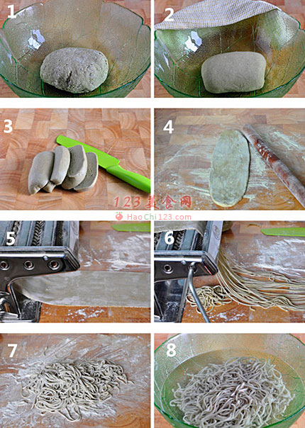 6、再用压面机的切面档切成面条(粗细随意)。