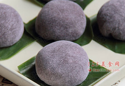 4、这款黑糍草饼,主材料用的是黑糯米,馅料用的是绿豆馅,口感QQ的,有点缠缠绵绵,味道甜而不腻,非常受家人的欢迎。[sushi.laoyanhuo.com]