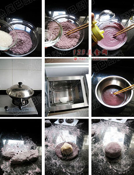9、捏好,揉成圆形,洒上小许熟糯米粉即可。