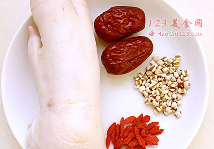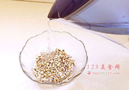 2、红枣洗净,去核;枸杞洗净;薏米淘洗干净,用清水泡透,捞出。