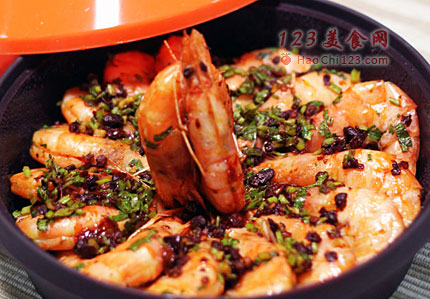 2、放豆豉酱的时候,记得一定要多放一勺里面的油,和虾一定要搅拌均匀,这样做出来的虾味道足,颜色好,另外皮也酥脆。