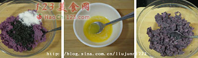1、紫薯泥过筛这一步建议不能省略,过筛后的紫薯泥会细腻很多。