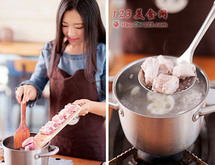 二、做法:1、小排骨冲洗干净,用清水浸泡20分钟,放入沸水中焯烫。