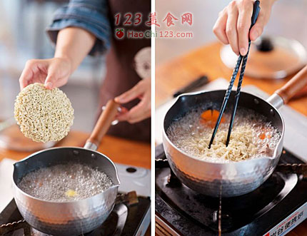 6、面煮软后用筷子划散,熄火后放入碗中。