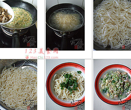 10、做汤卤的时候,另起一锅,水烧开后,下入面条。