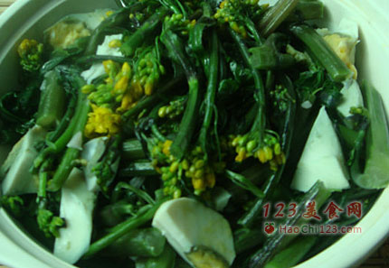 2、据史籍当中记载,红菜苔早在唐代就已经是著名的蔬菜,古时候一直是湖北地方向皇帝进贡的特产,曾被封为“金殿玉菜”。