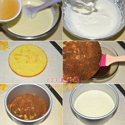 4、脱模的时候,可以用吹风机,也可以用热毛巾包住蛋糕模的外圈捂一小会,二种方法都可以顺利将蛋糕脱出来。