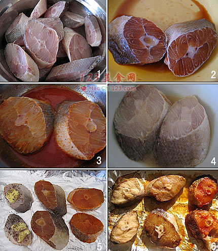 1、鱼块洗净,分别用调料ABC来腌制鱼块2小时,中途翻面。