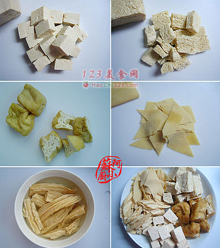 3、五福是指:长寿(命不夭折而且福寿绵长)、富贵(钱财富足而且地位尊贵)、康宁(身体健康而且心灵安宁)、好德(生性仁善而且宽厚宁静)、善终(能预先知道自己的死期。临命终时,没有遭到横祸,身体没有病痛,心里没有挂碍和烦恼,安详而且自在地离开人间),听后很感慨,如果能有这些真的是人生的大福气呀!所以用了五种豆腐,和各种材料一起煲,满满的一锅以及明亮的颜色,是不是有一种福气满满的感觉呢!希望这道普普通通的菜,能给各位带来一些祝福,阿苏就心满意足了啊![sushi.laoyanhuo.com]