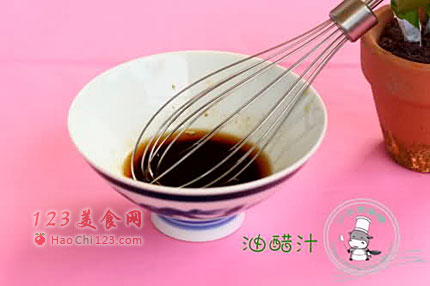3、油醋汁最好要抽打成油醋混合状,口味可以根据自己家的口味稍作调整,也可以将香醋换成水果醋或白醋,成品颜色会更好看一些,或用喜欢的沙拉酱拌也是可以的。[sushi.laoyanhuo.com]