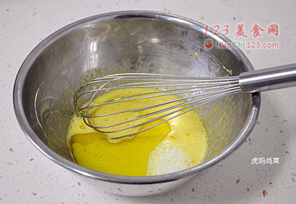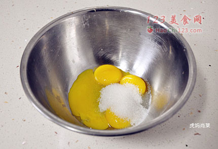 5、蛋白中加入白砂糖。