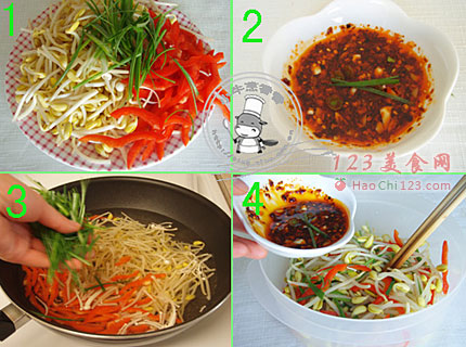 1、汆烫好的菜捞起泡在冰水里一会儿,可以保持黄豆芽的脆嫩。