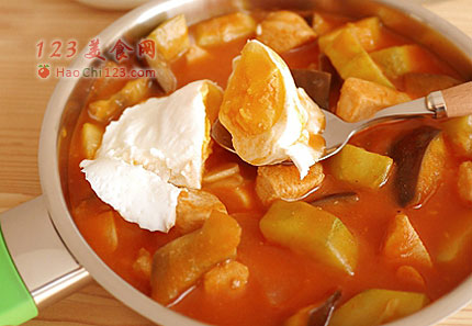 7、可以用面包蘸着吃,或者用葱油饼泡在汤汁里吃。