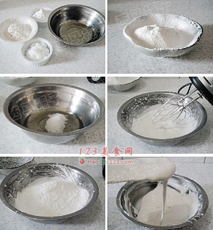 6、用橡皮刮刀上下翻拌,拌好后的面糊可如缎带般的缓缓流动。