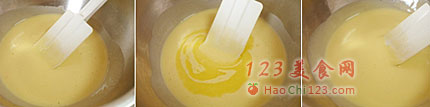 5、加入融化的黄油,混合均匀。