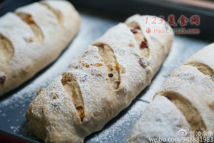 8、面团表面撒上面粉,用利刀割包。