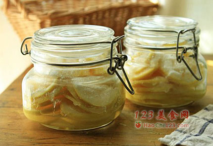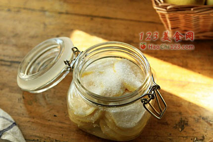 3、放入最后一层后,撒上较多的白糖,盖上盖子,冷藏保存。大概一个月后就可以食用了。