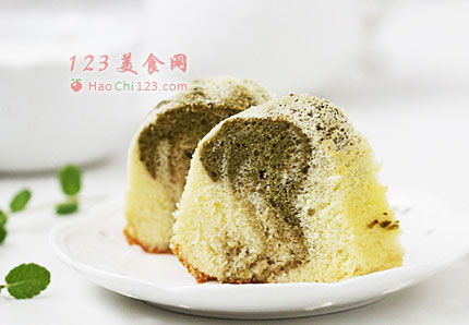 4、大碗取出一半蛋黄糊,加抹茶粉拌匀。