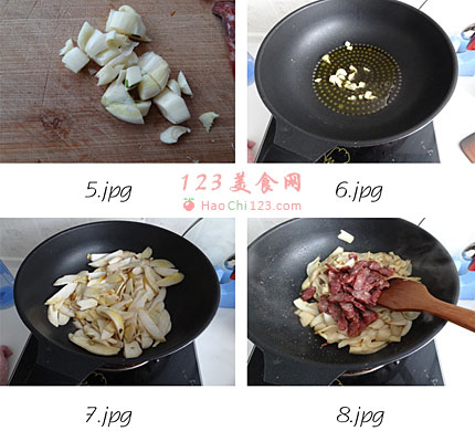 7、下杏鲍菇大火煸炒8成熟,放盐,牛肉粉调味。