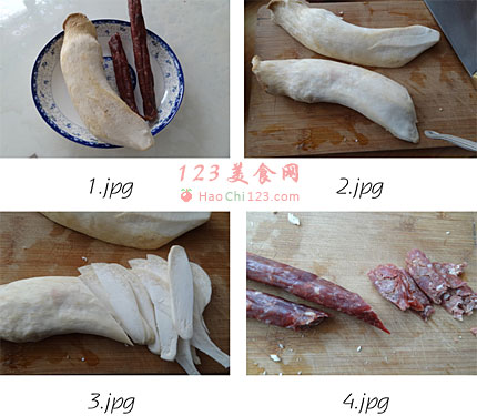 贴士:1、杏鲍菇从中间刨开在切,更接近腊肠切好的形状,菜好看一些。