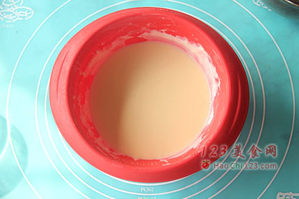 3、制作时也可用固定模具,如果使用活底蛋糕模具,用锡纸包模具的时候一定要包好,否则容易漏。